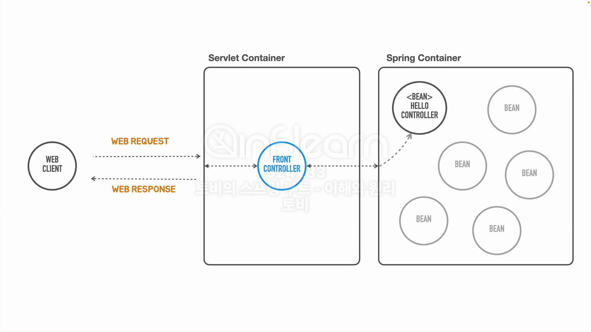 지난 시간에는 프론트 컨트롤러에 HelloController라는 오브젝트를 하나 만든다음 HelloController를 사용하는 방식으로 구현을 했는데