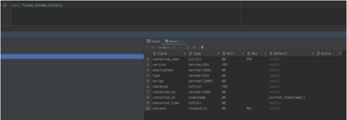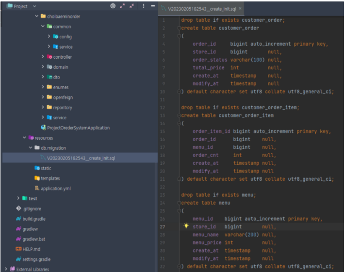 flaywayClean을 통해 테이블 전체를 삭제할 수 있고 flywaymigrate을 통해 최신 상태로 마이그레이션할 수 있습니다. 우리가 정의한 flyway sql 파일을 버전별로 처음부터 실행해줍니다. 같이 개발하는 개발자가 새롭게 db 구조를 변경해도 flyway를 통해 손쉽게 db변경상태를 관리할 수 있습니다.