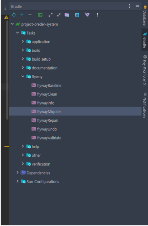 위 작업처럼 해주면 인텔리제이 Gradle목록에 flyway항목이 추가됩니다.