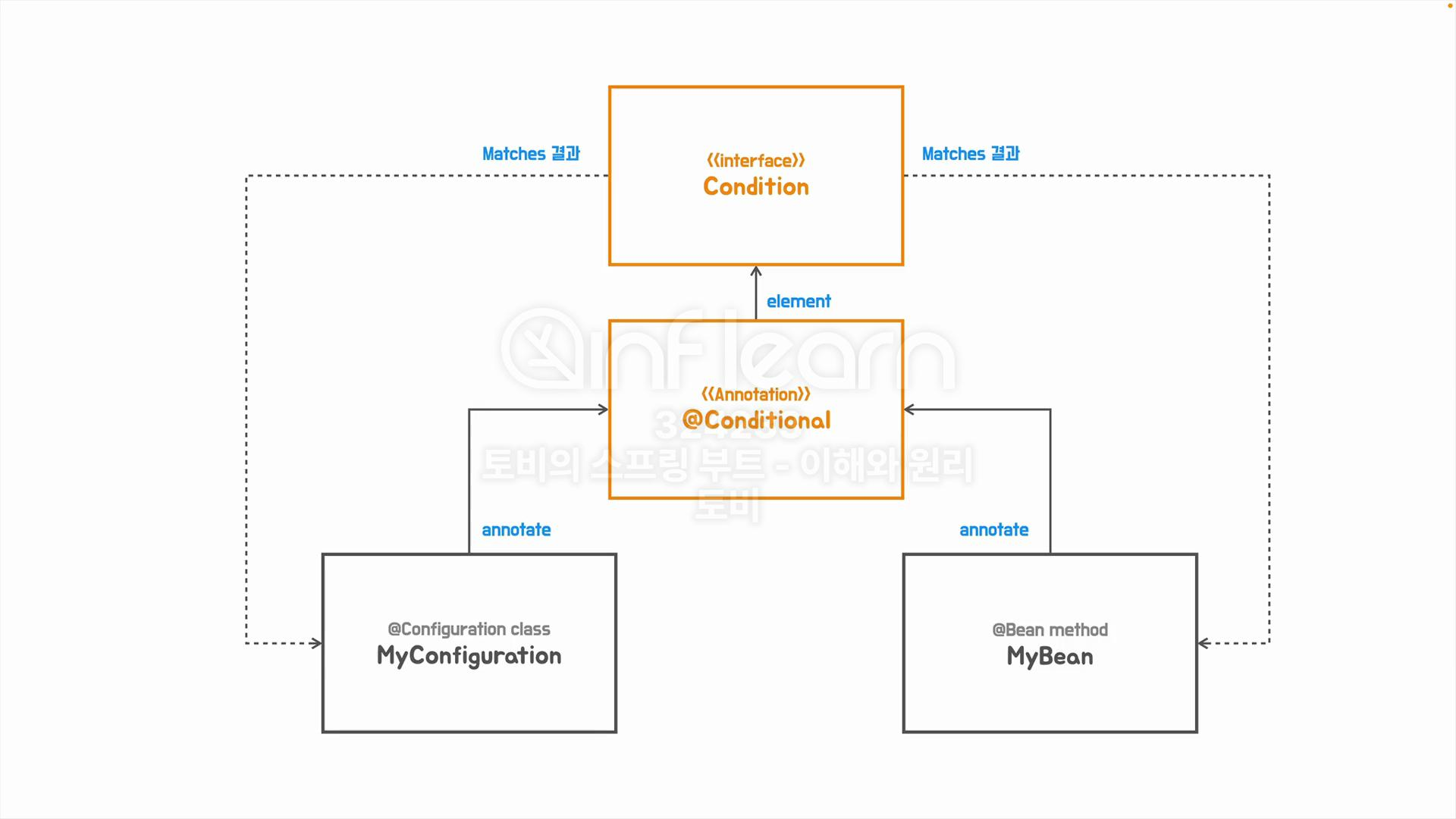 @Conditional에는 Condition의 구현체 클래스를 알려줘야 합니다. Condition에는 matches라는 메소드가 있는데